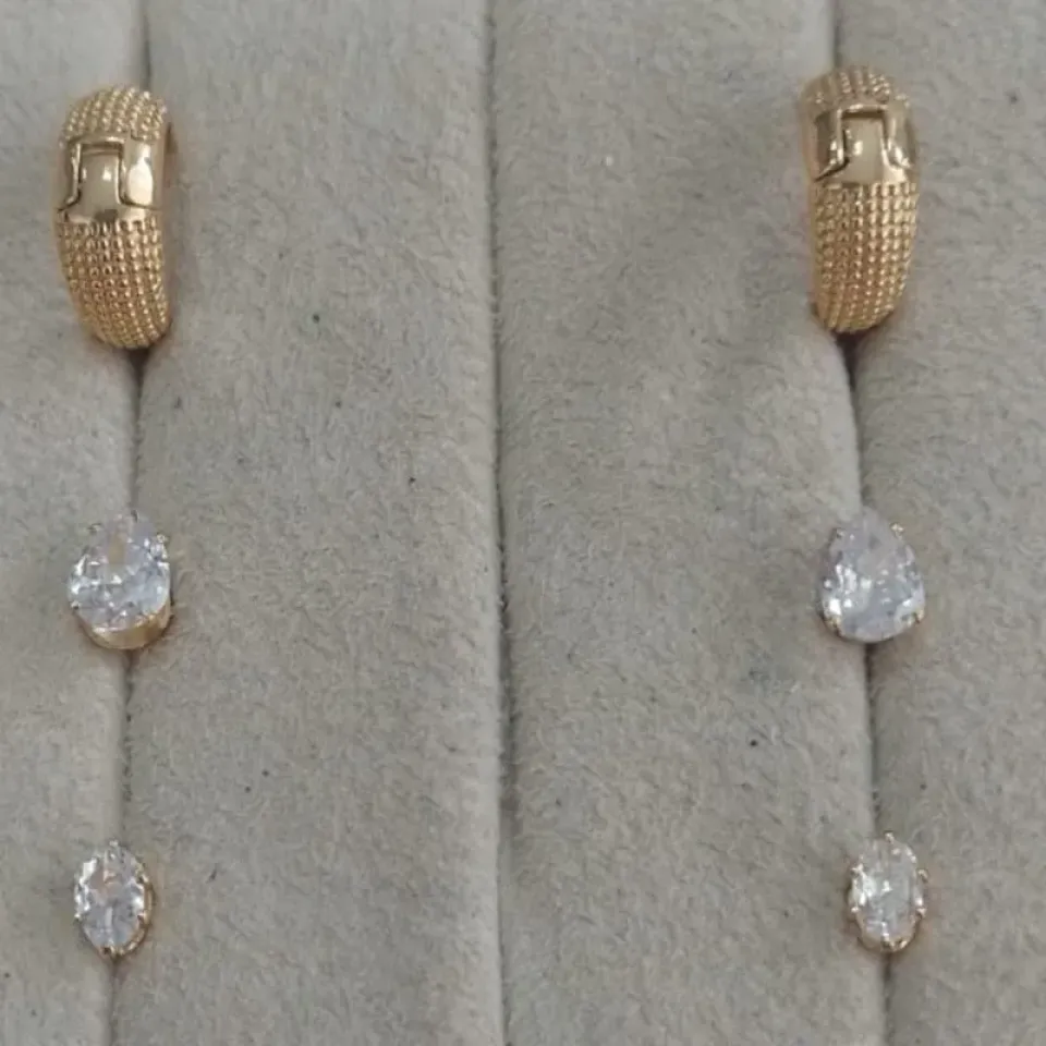 O luxo do ouro encontra o brilho das zircônias! Cada peça é meticulosamente banhada a ouro 18K e cravejada com zircônias de alta qualidade, proporcionando um efeito sofisticado e radiante. Com um design pensado para mulheres que amam glamour e refinamento, essas semijoias são ideais para realçar sua elegância com um toque extra de brilho.